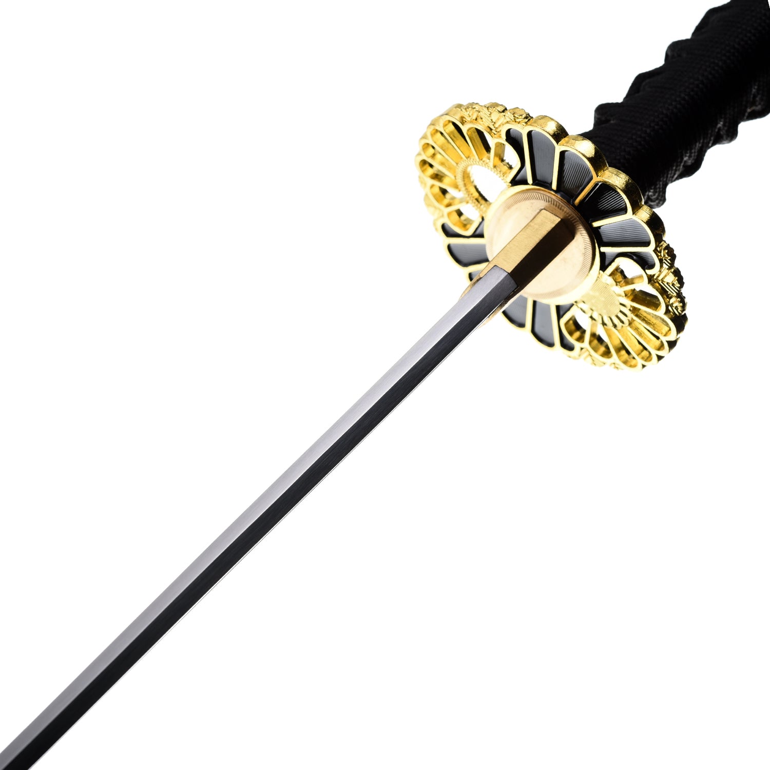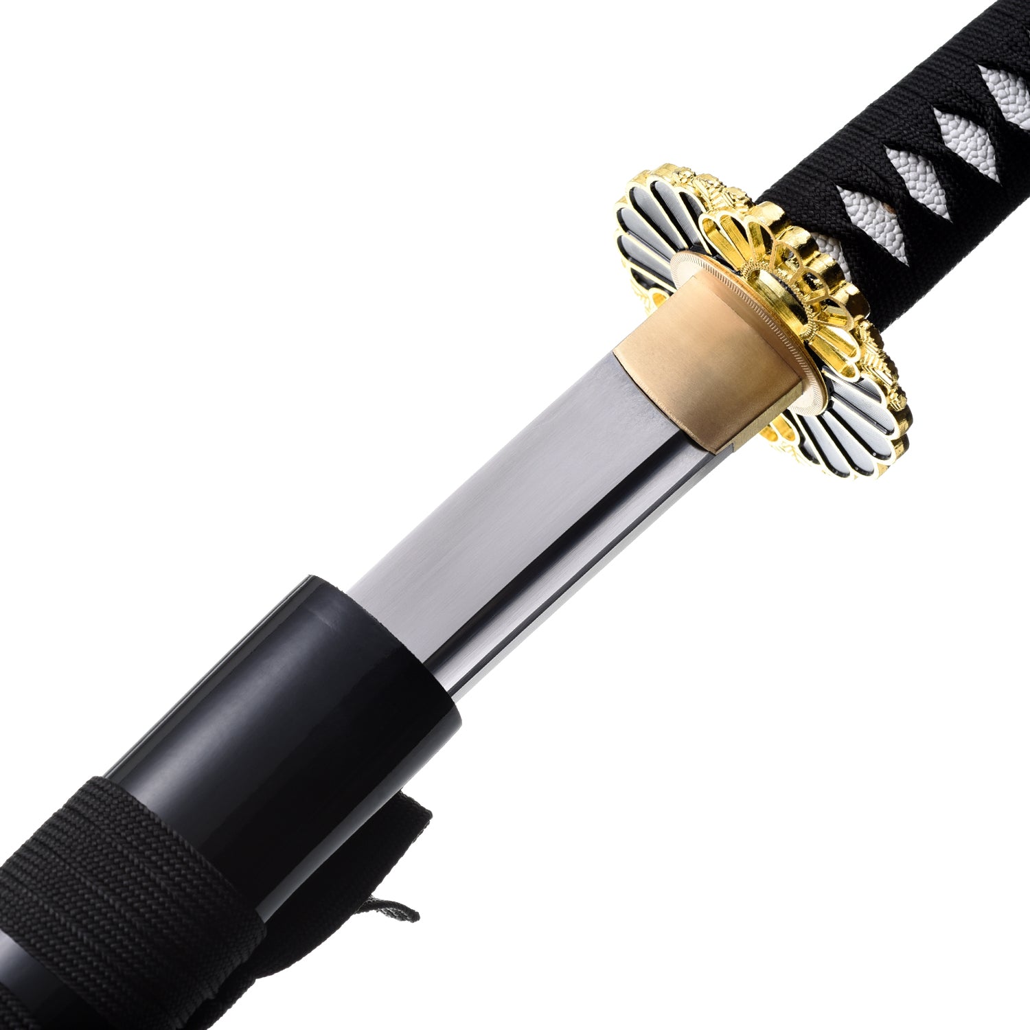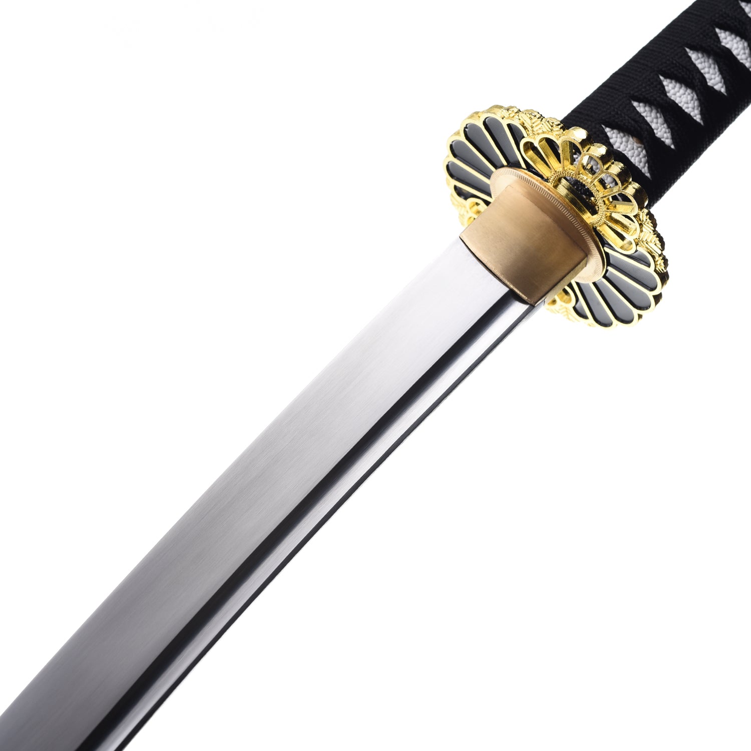 1060 Steel Katana Golden Sunflower Tsuba Black Saya