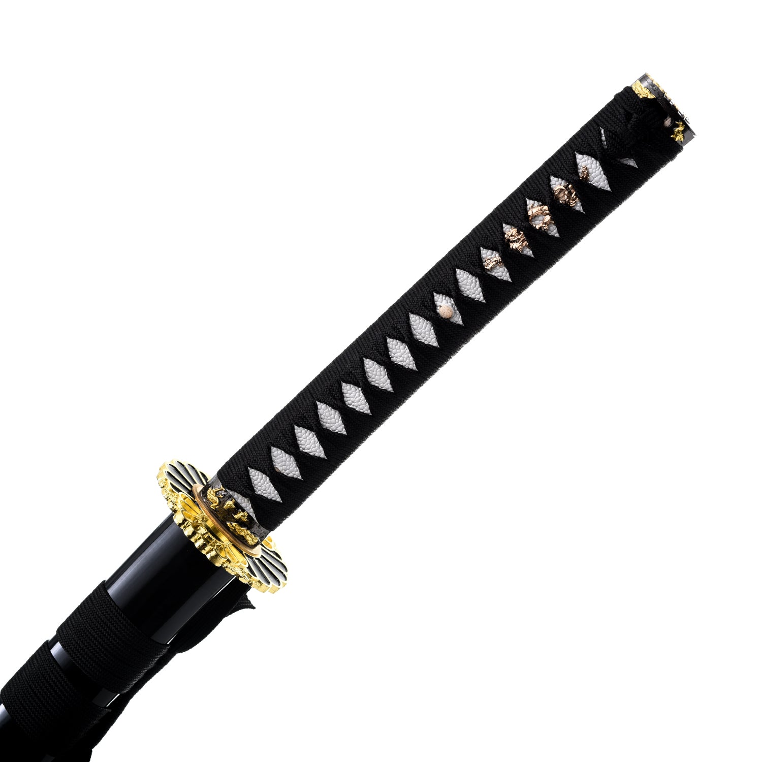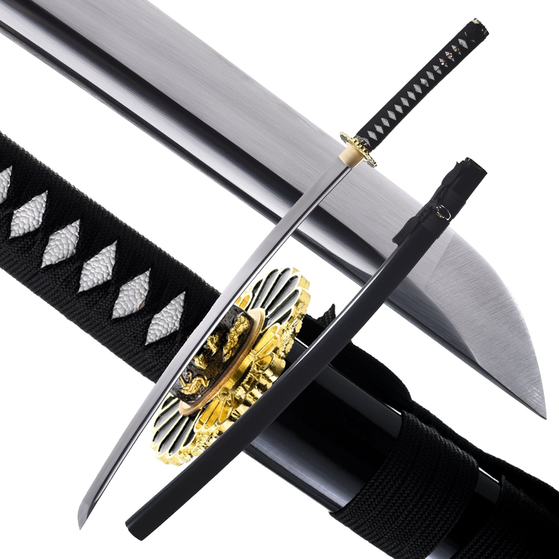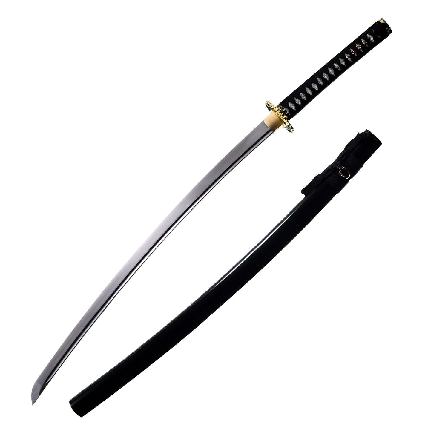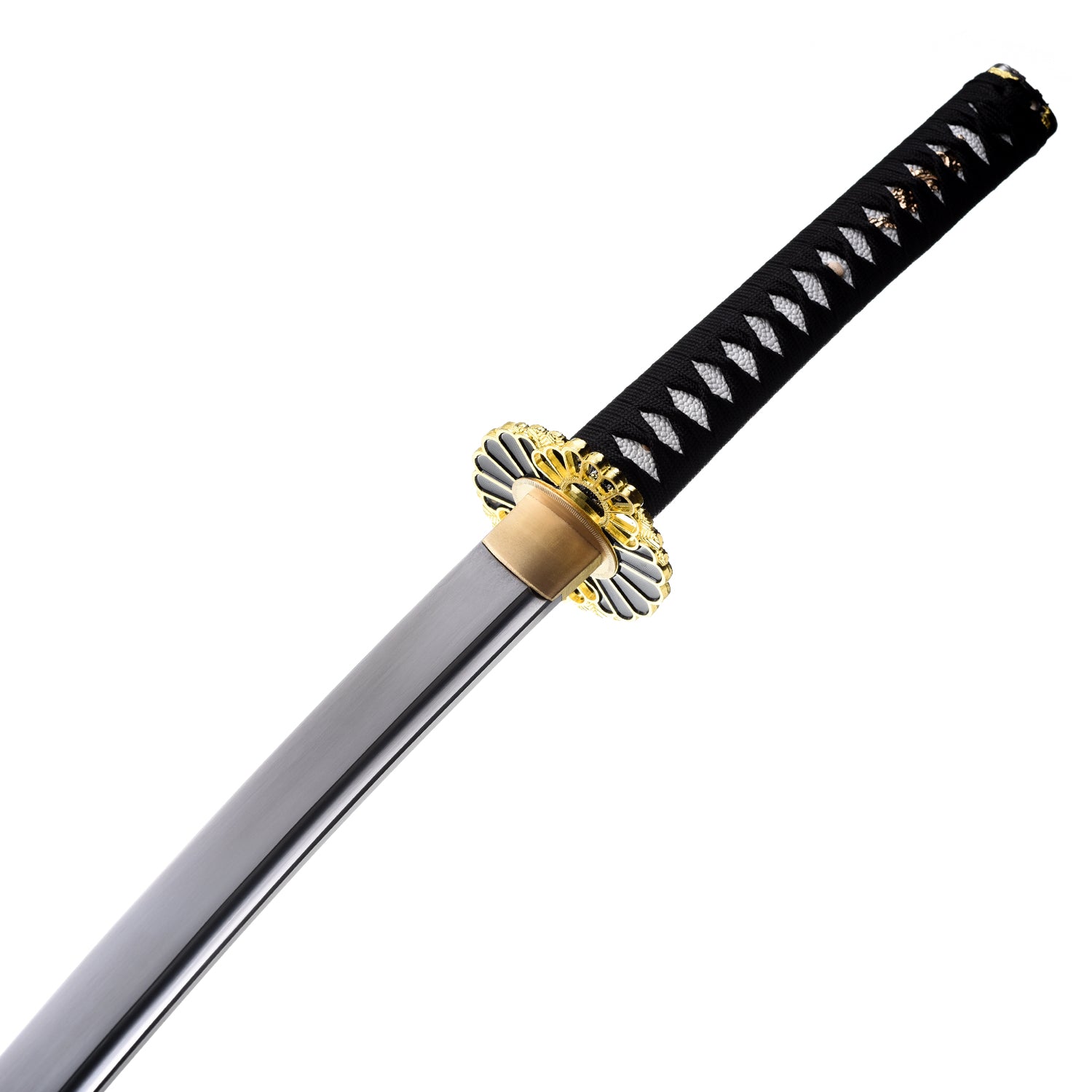1060 Steel Katana Golden Sunflower Tsuba Black Saya
