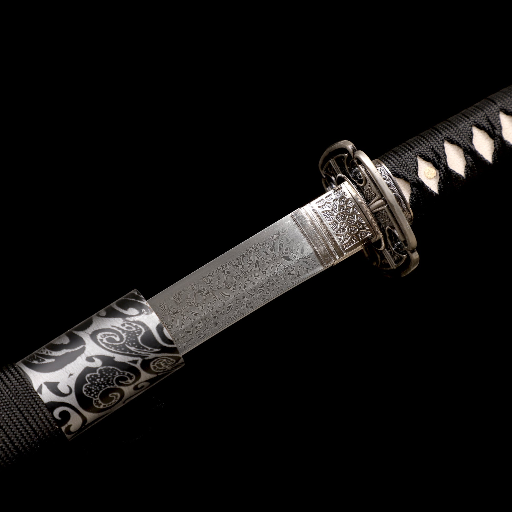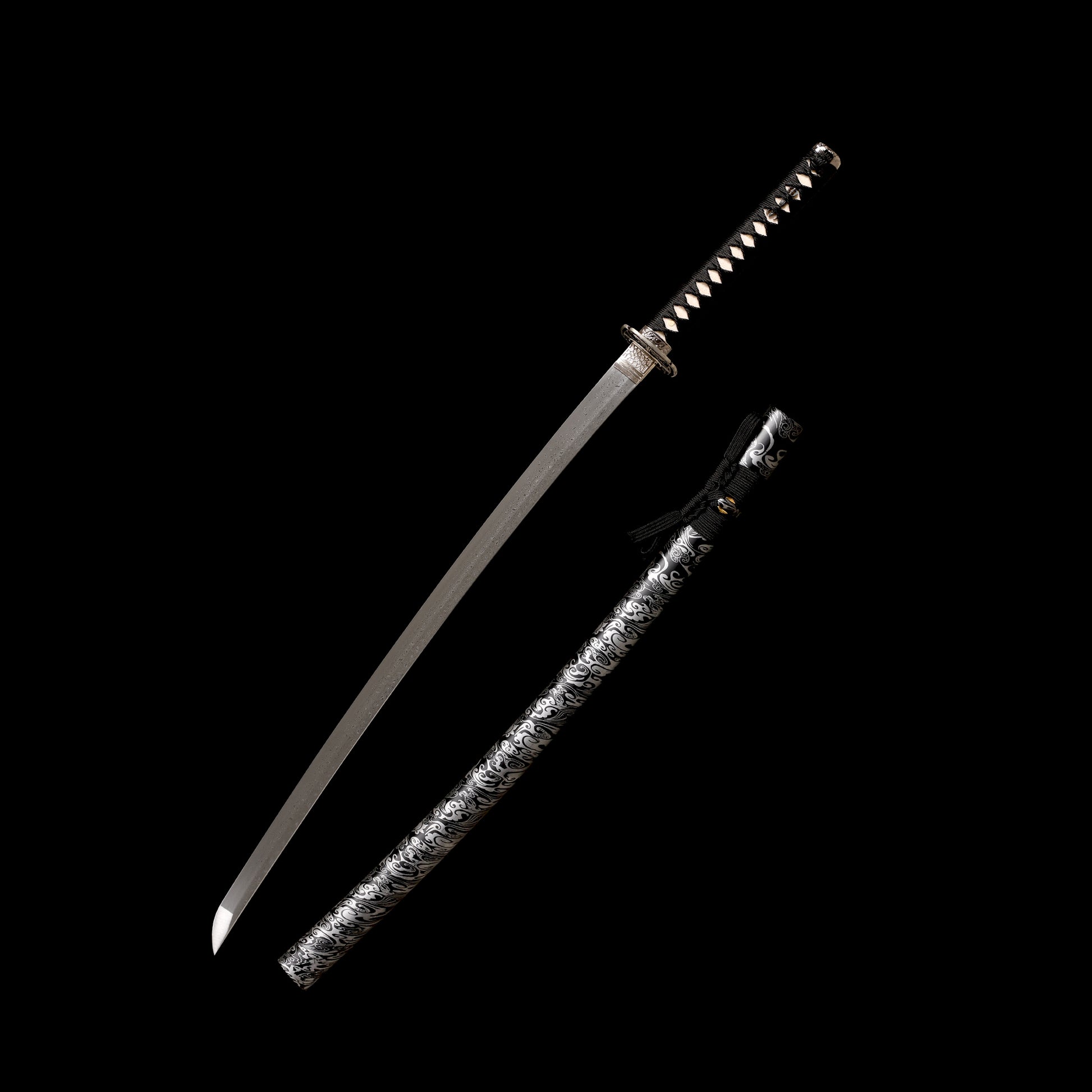 Ripple DAMASCUS KATANA:The blade is made of 1095+15N20 steel by forging, and then undergoes quenching and tempered process,ensure the hardness and toughness of the blade while having distinctive patterns.