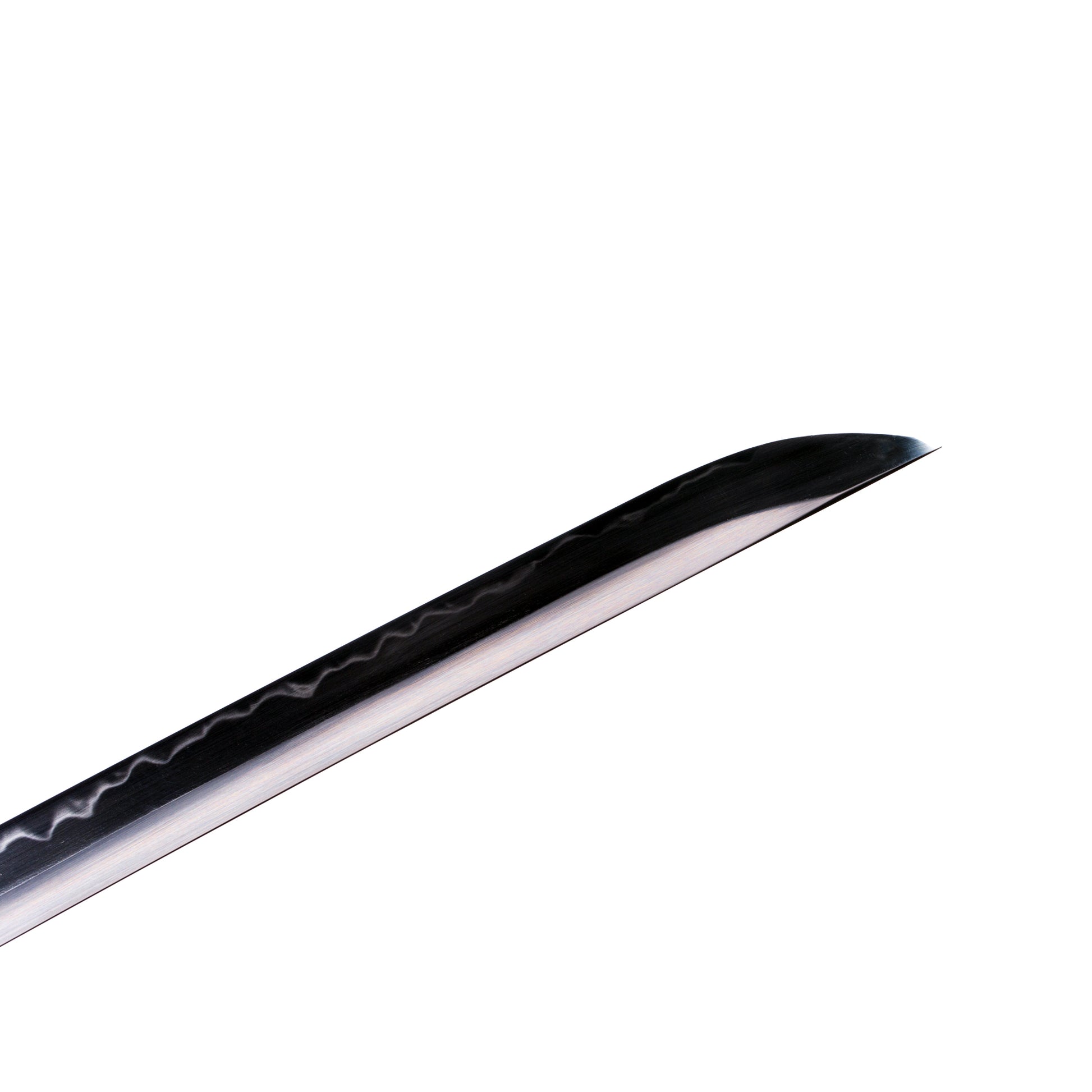 - Kogarasu Maru Blade:The katana blade is of Kogarasu Maru type, made of high carbon steel 1095 tempered and forged with natural Hamon.The blade is polished by hand, and the hardness of the blade is very high, which can reach 58-60HRC.
