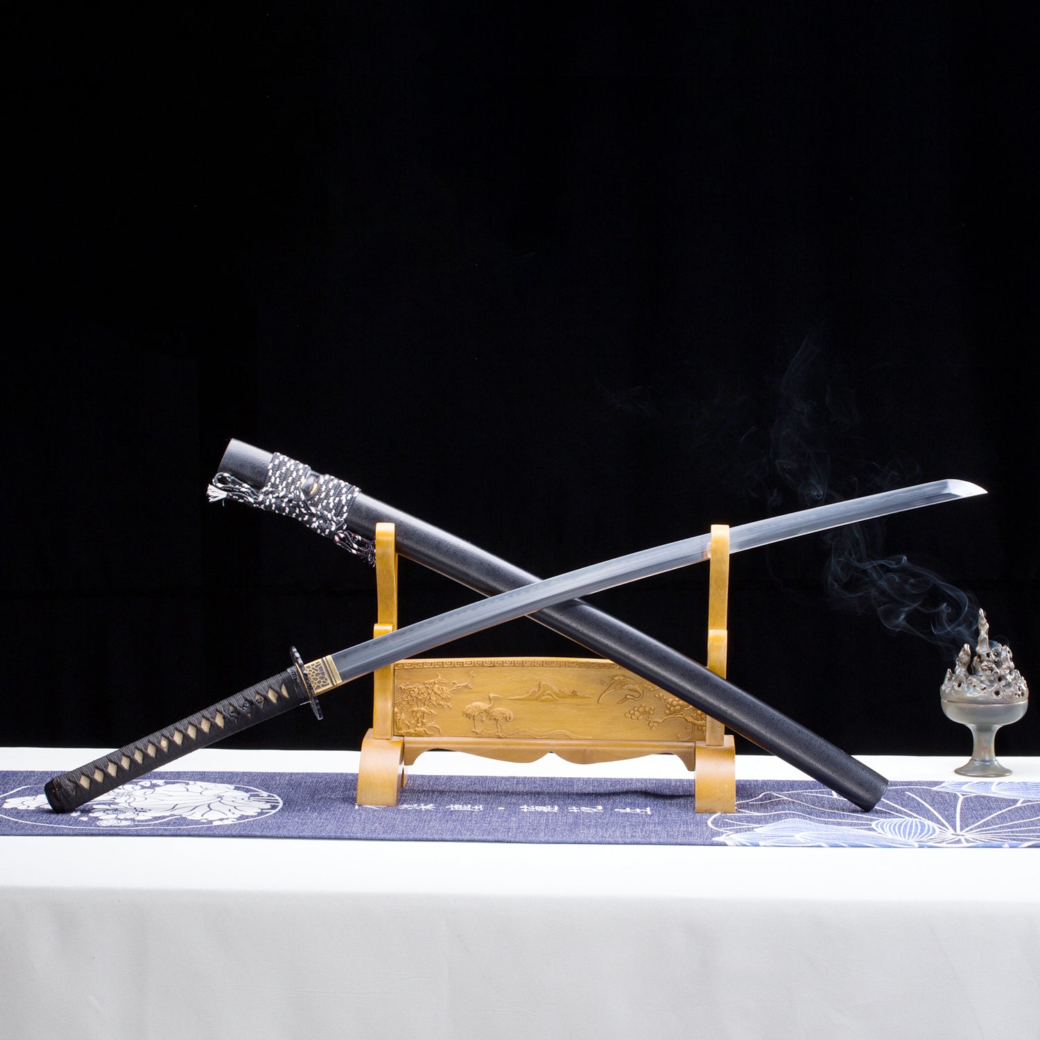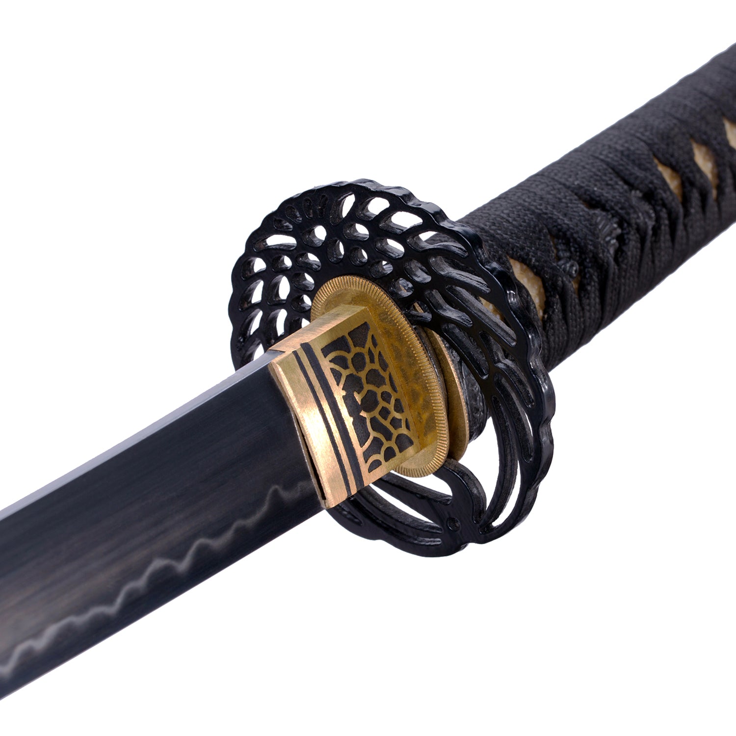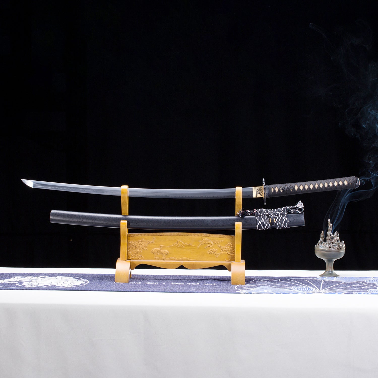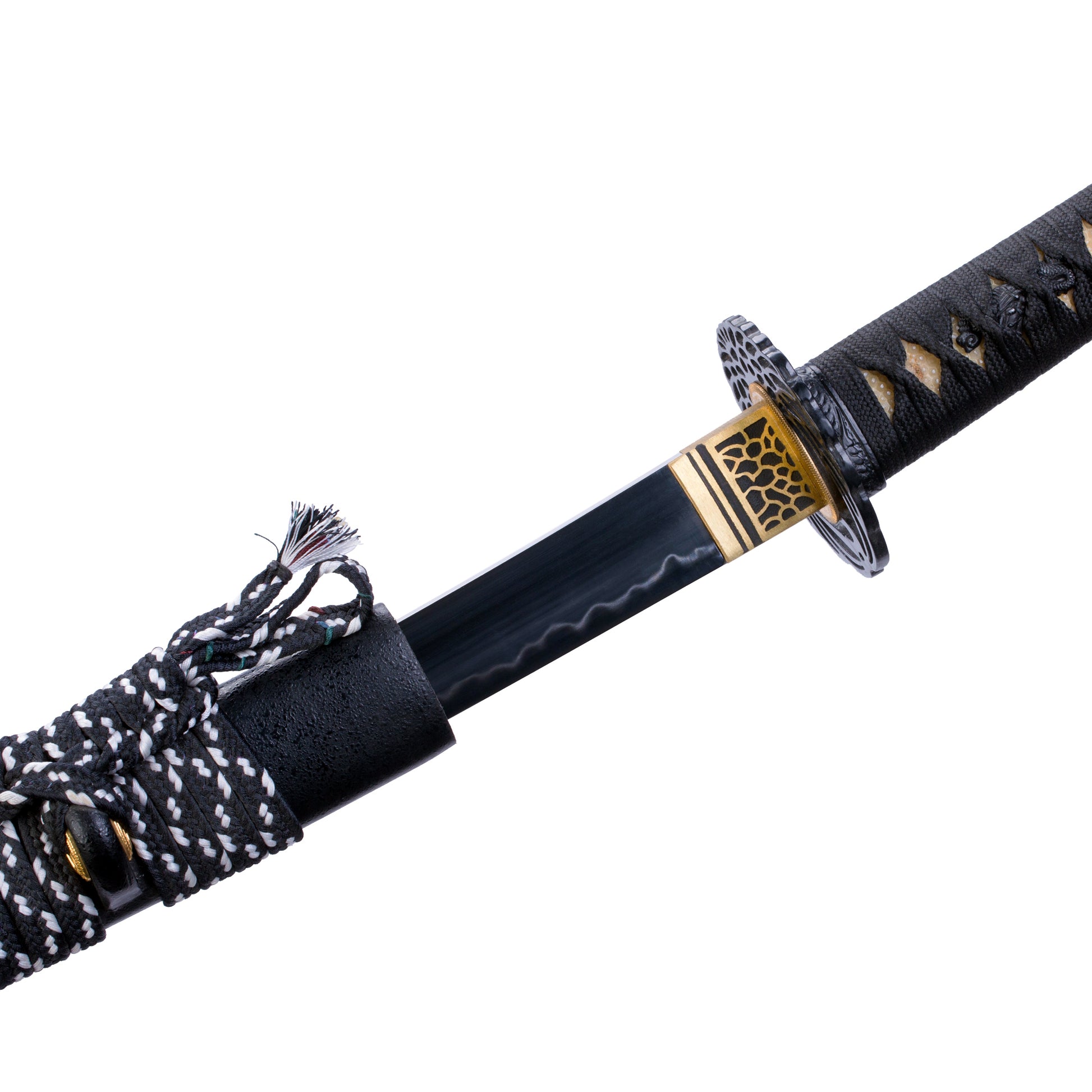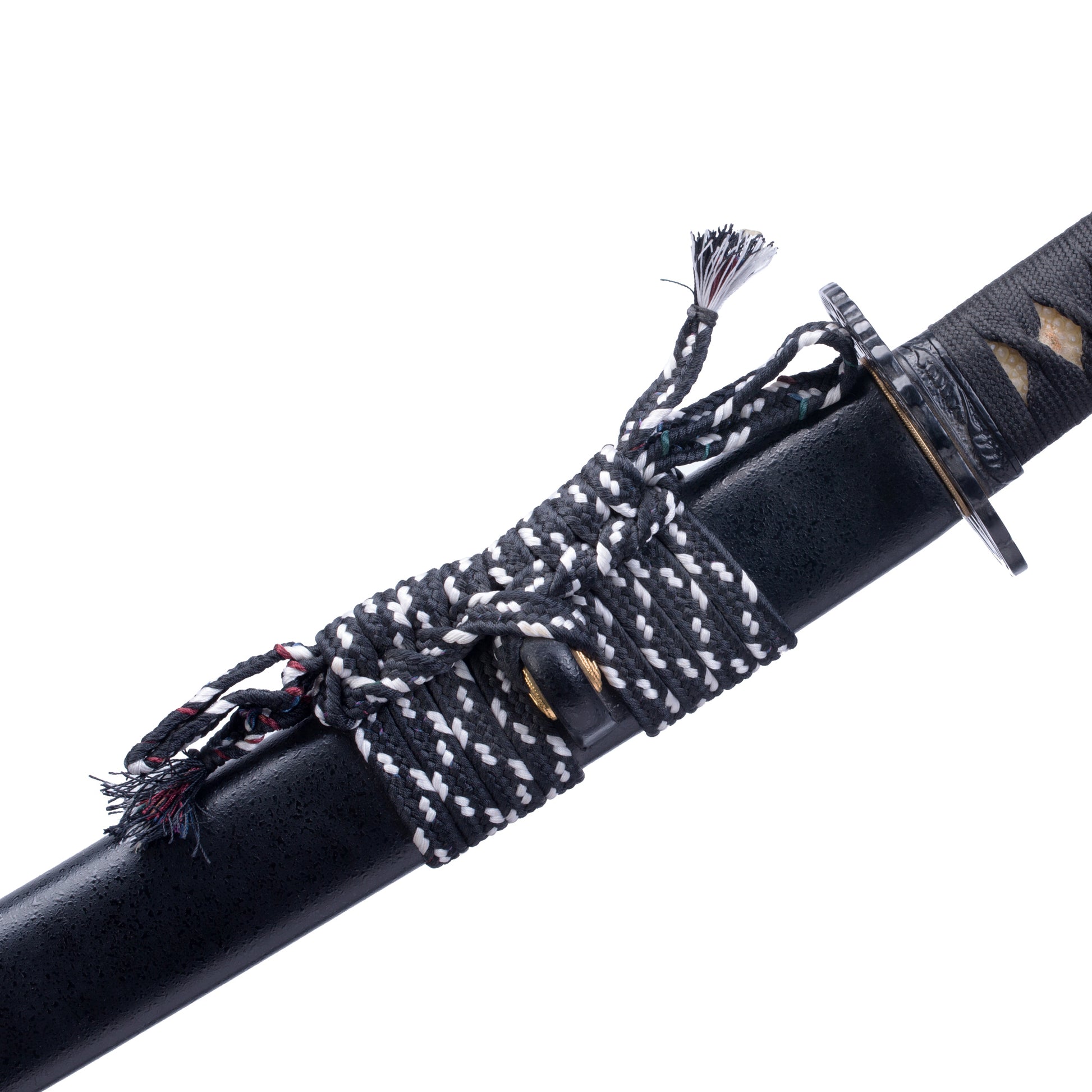 - Black Raindrops Katana:This katana is composed of 1095 clay tempered blade, iron accessories and black raindrop Saya. It is a truly high-quality katana.
